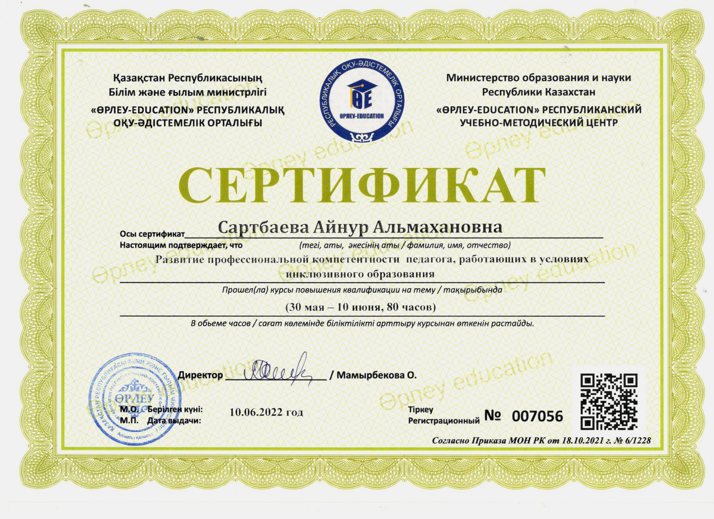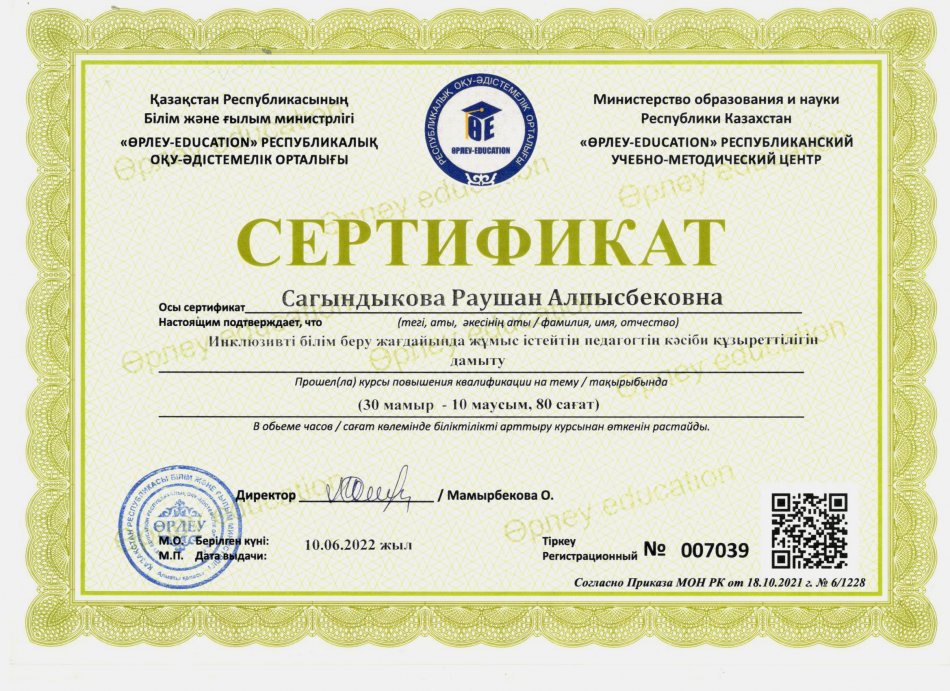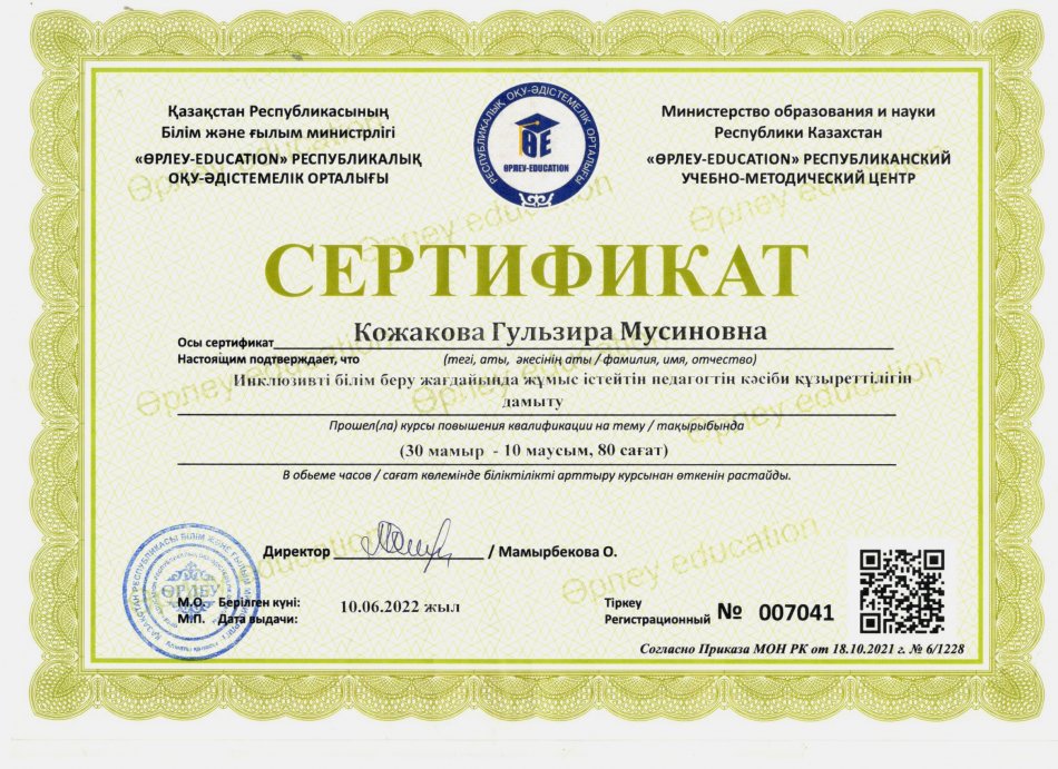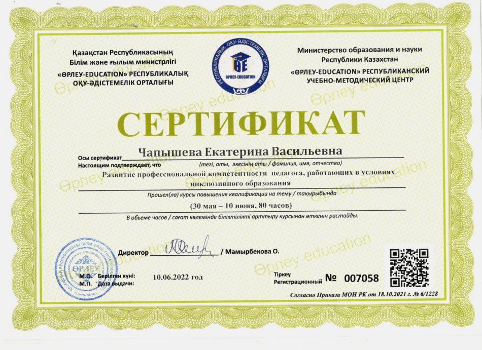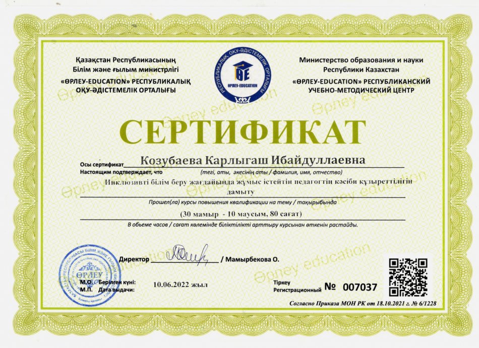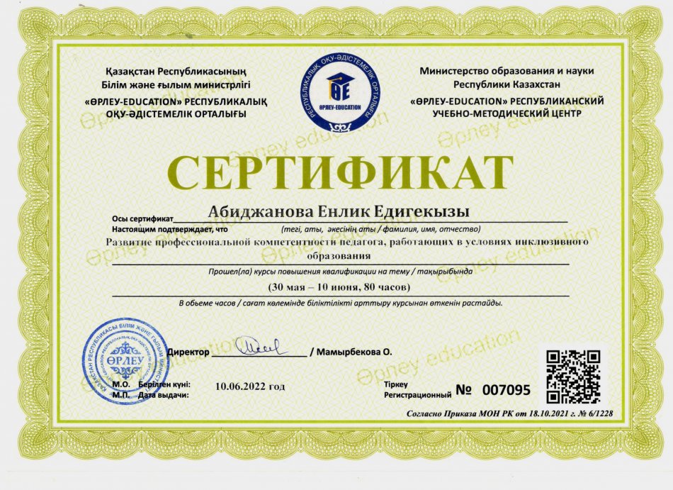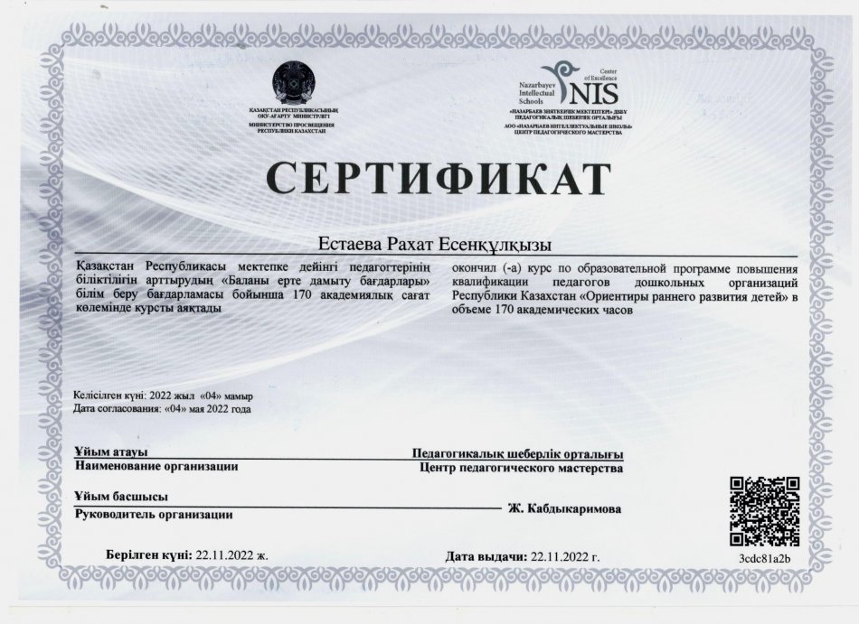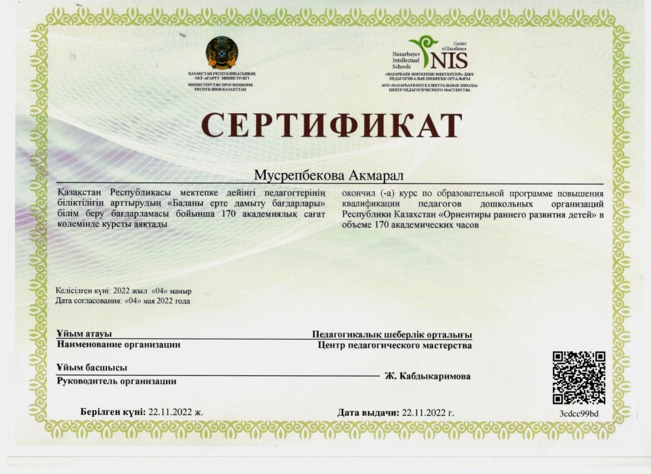 30 желтоқсан 2022 2022 жылдағы біліктілік арттыру курсынан өткен педагогтердің сертификаттары Осы беттің QR-коды:QR-код этой страницы: