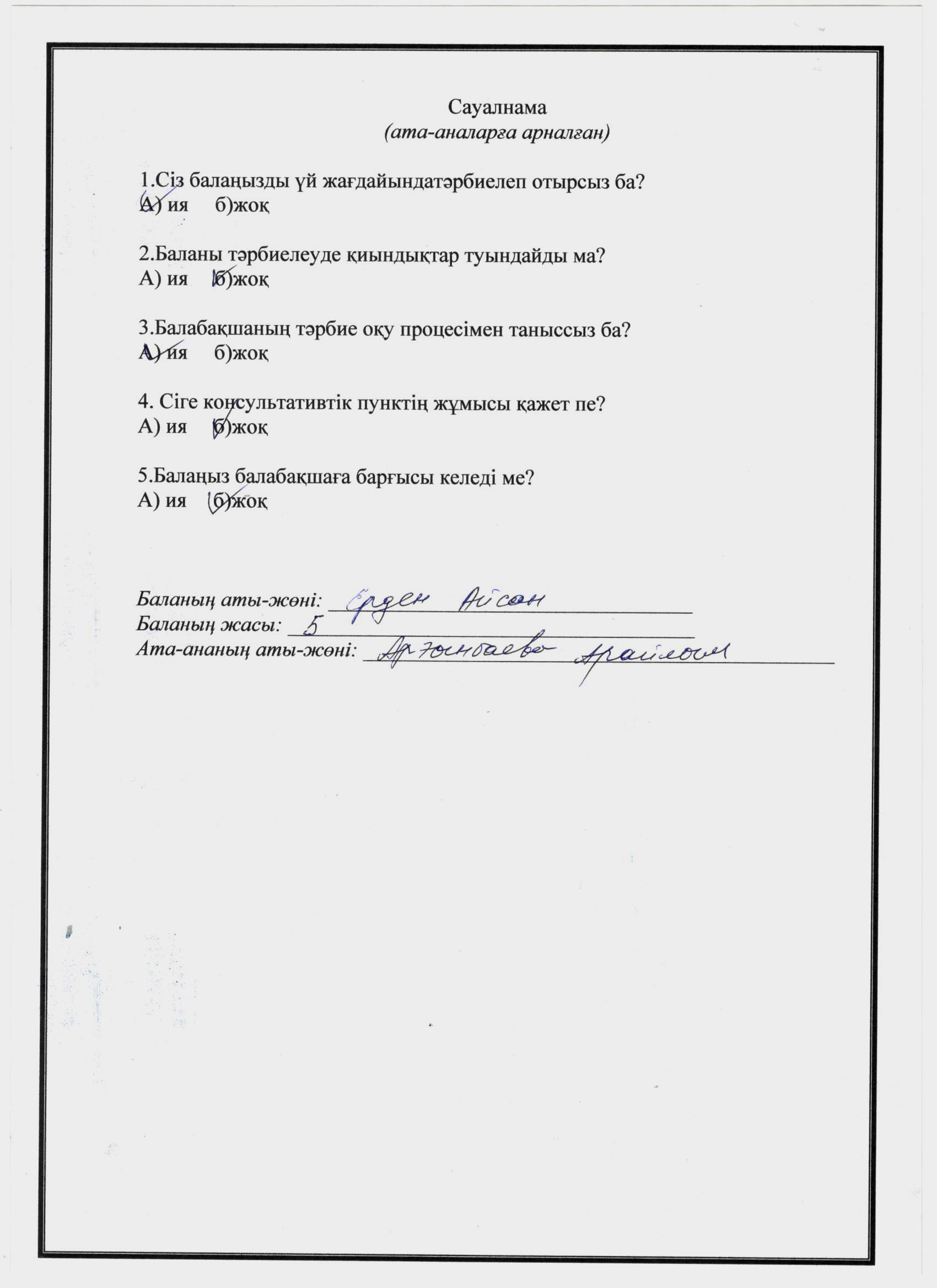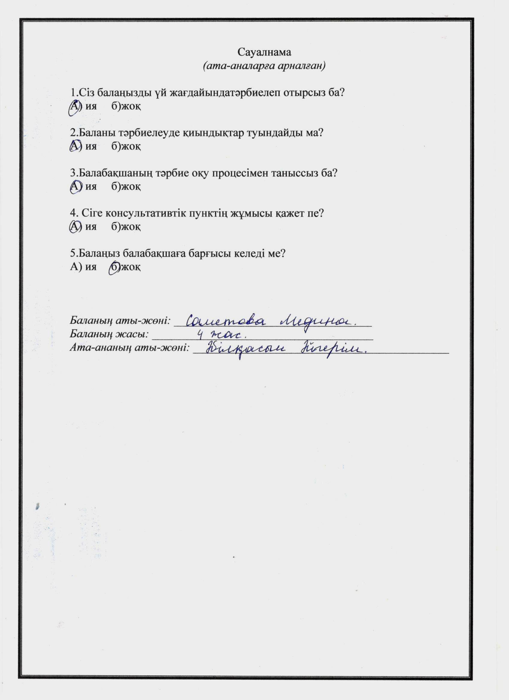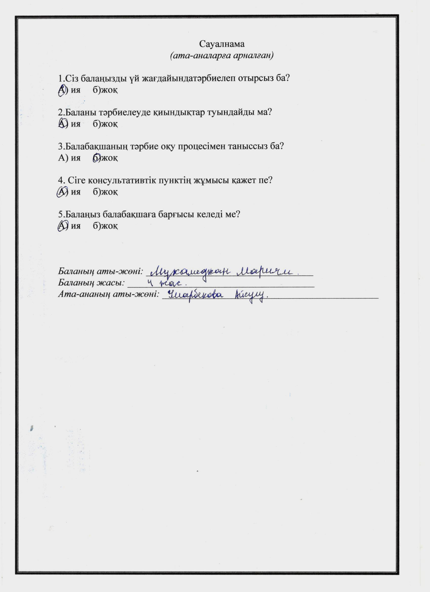 » » Ата-анаға арналған сауалнама