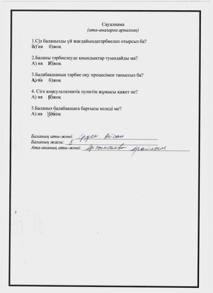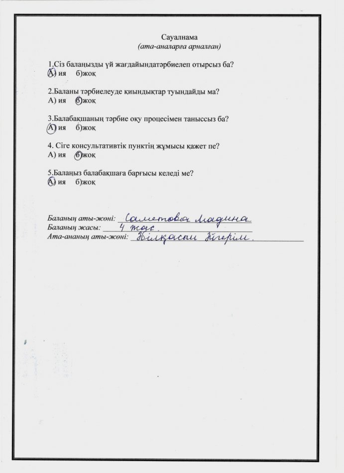 Ата-анаға арналған сауалнама » №7 бөбекжай-бақшасы