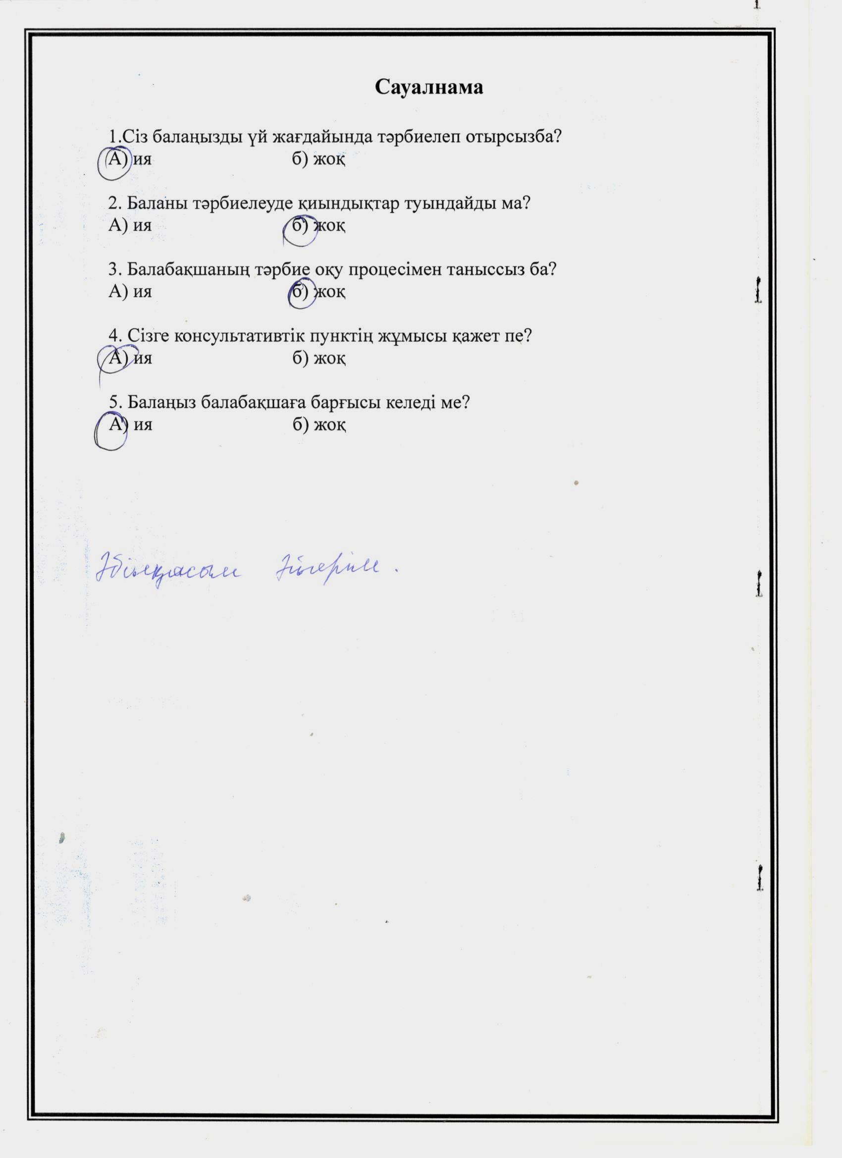 Ата-аналармен жүргізілген сауалнама » №7 бөбекжай-бақшасы