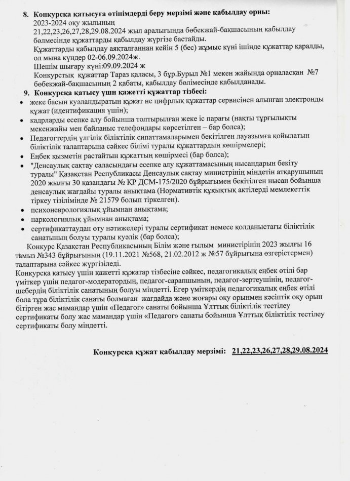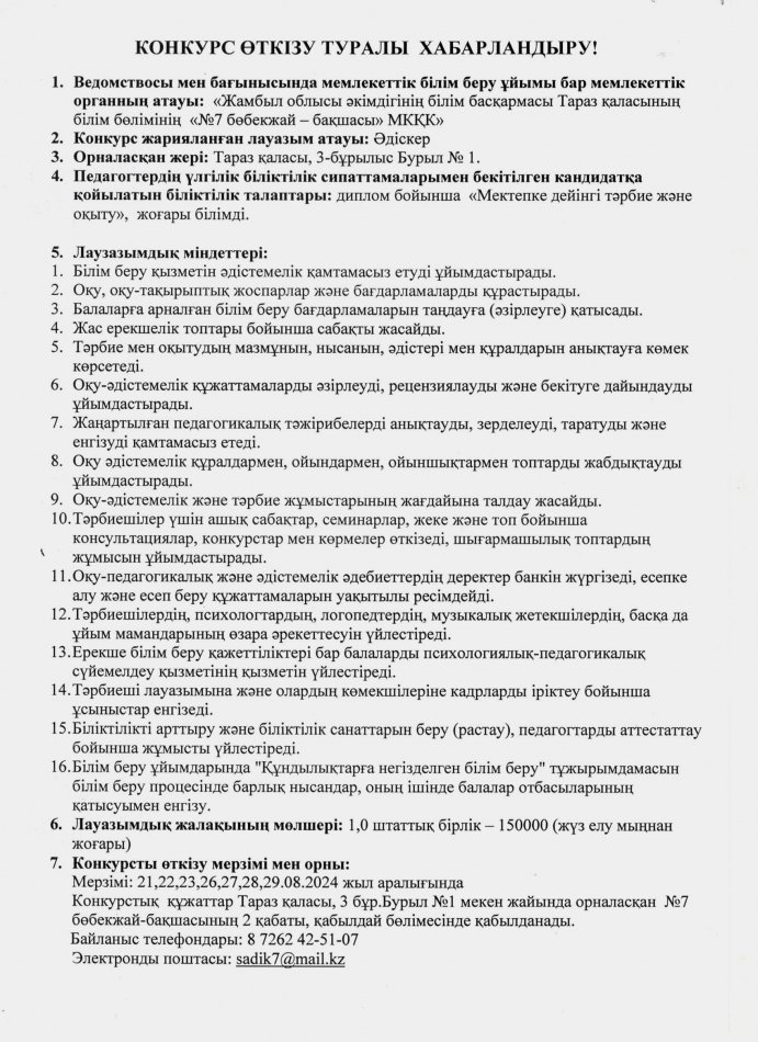 КОНКУРС ӨТКІЗУ ТУРАЛЫ ХАБАРЛАНДЫРУ! » №7 бөбекжай-бақшасы