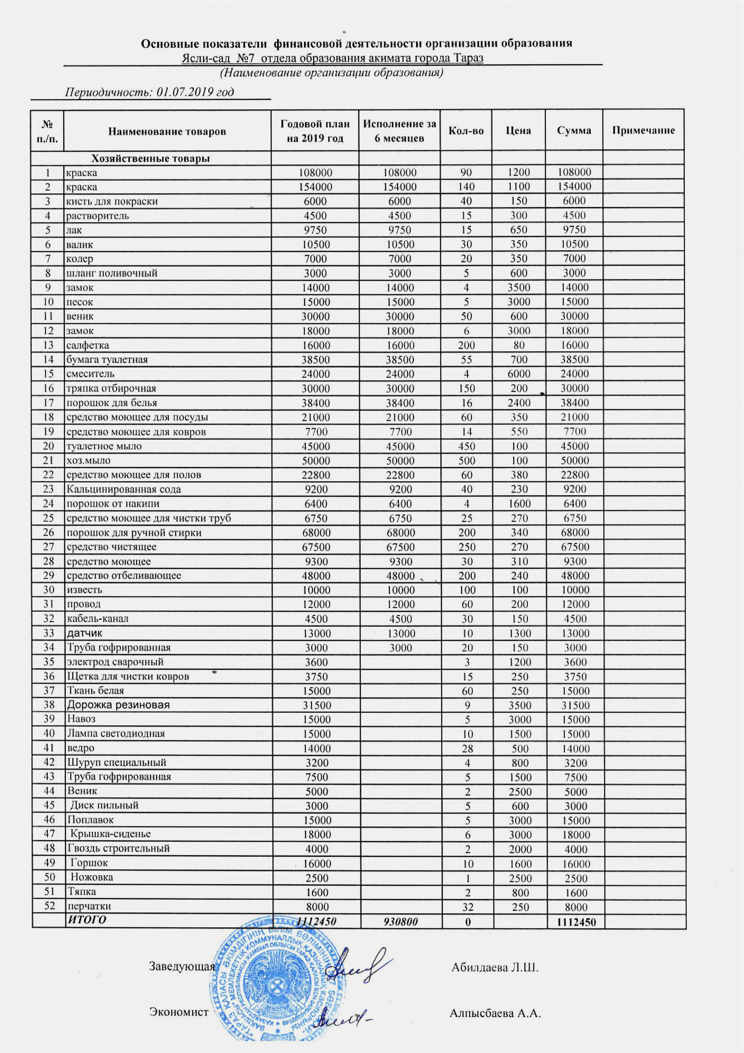 Основные показатели финансовой деятельности » №7 бөбекжай-бақшасы