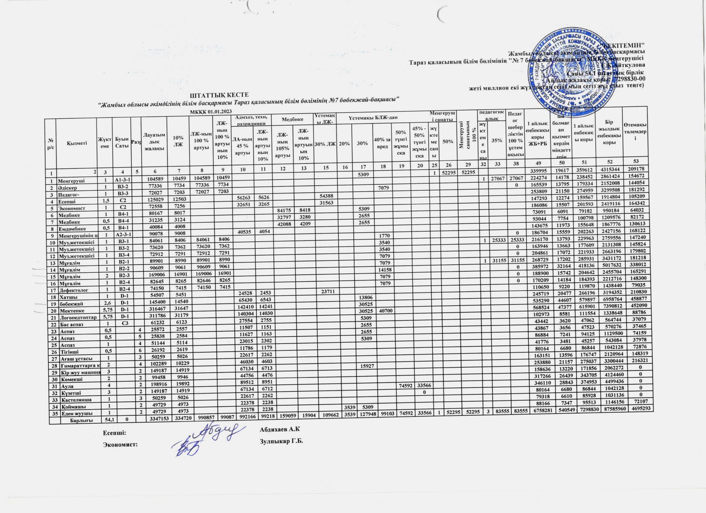 Штаттық кесте 01.01.2023 ж » №7 бөбекжай-бақшасы