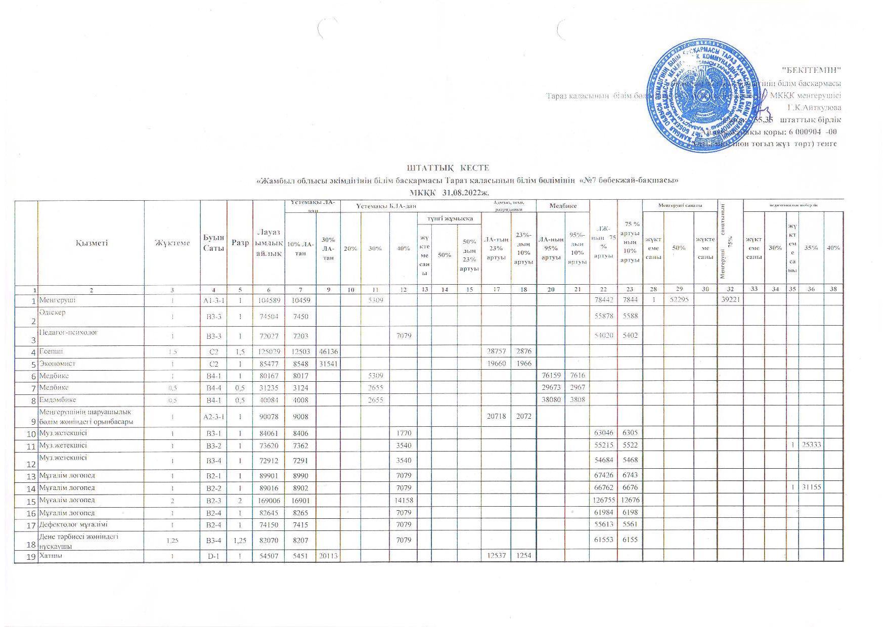 01 қыркүйек 2022 0 1 2 3 4 5 Штат кестесі және тарификациялық тізім 01.09.2022 Осы беттің QR-коды:QR-код этой страницы:
