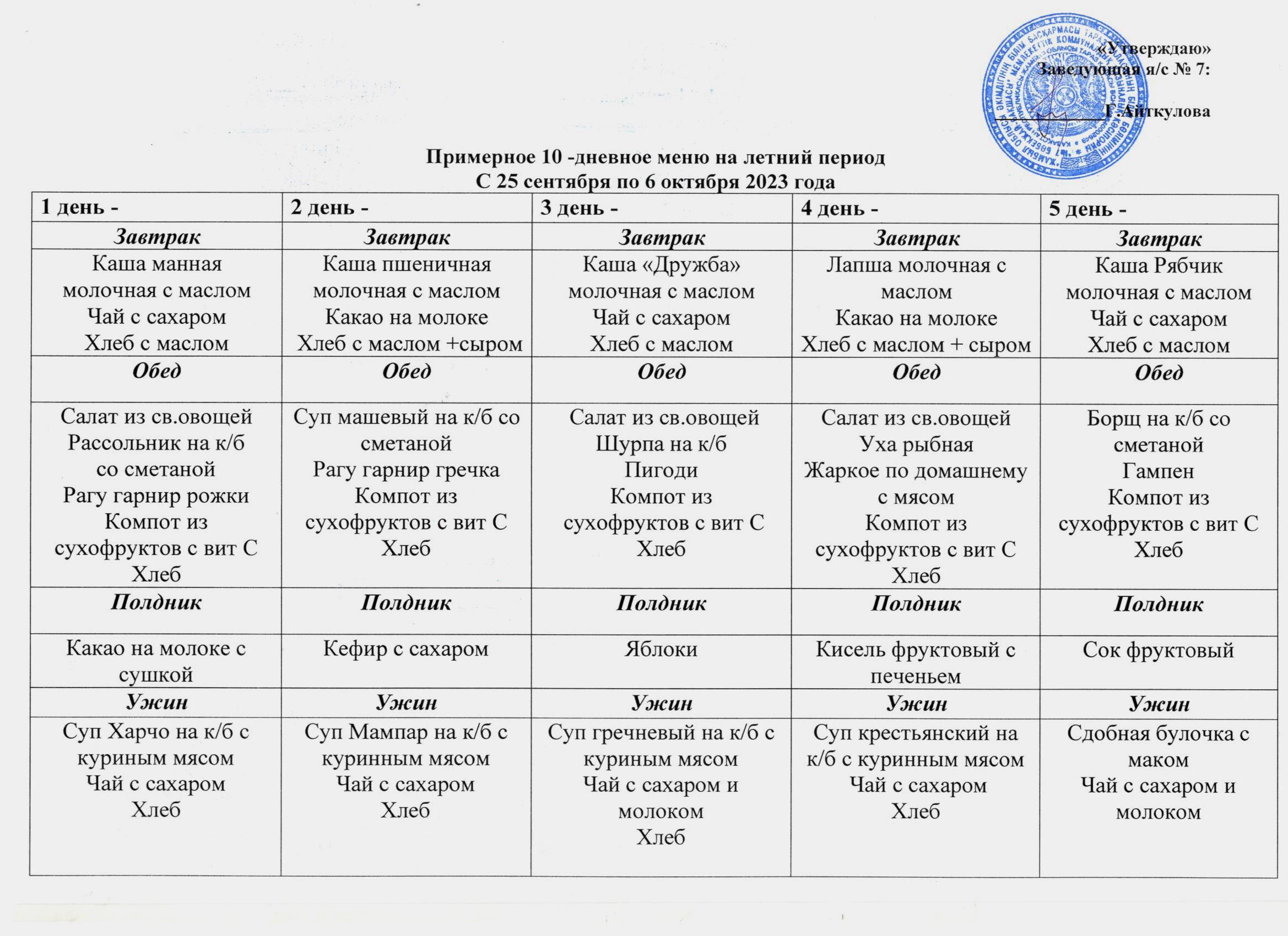 Примерное 10-дневное меню » №7 бөбекжай-бақшасы