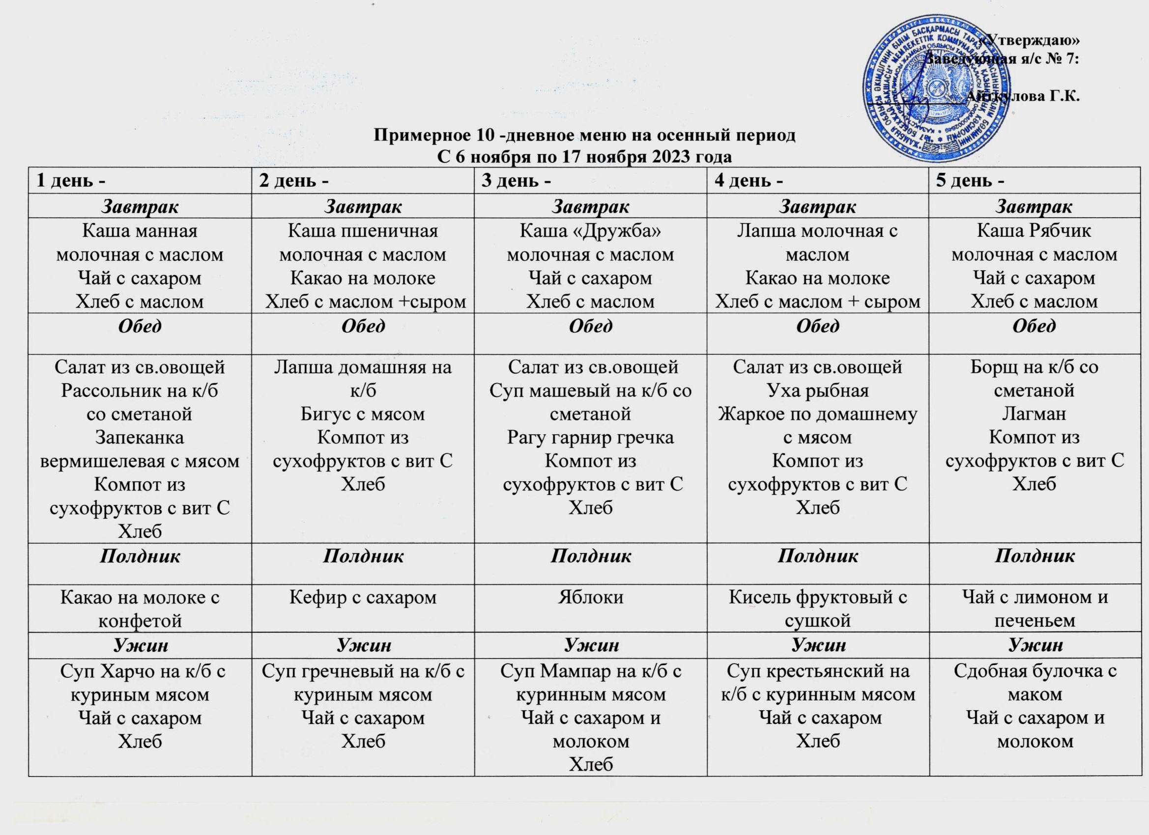 Примерное 10-дневное меню » №7 бөбекжай-бақшасы