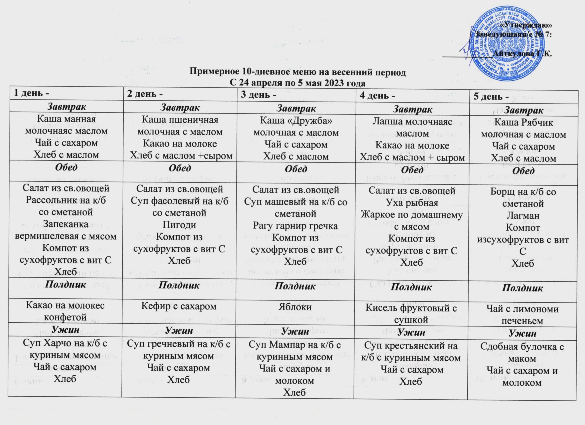 Примерное 10-дневное меню » №7 бөбекжай-бақшасы