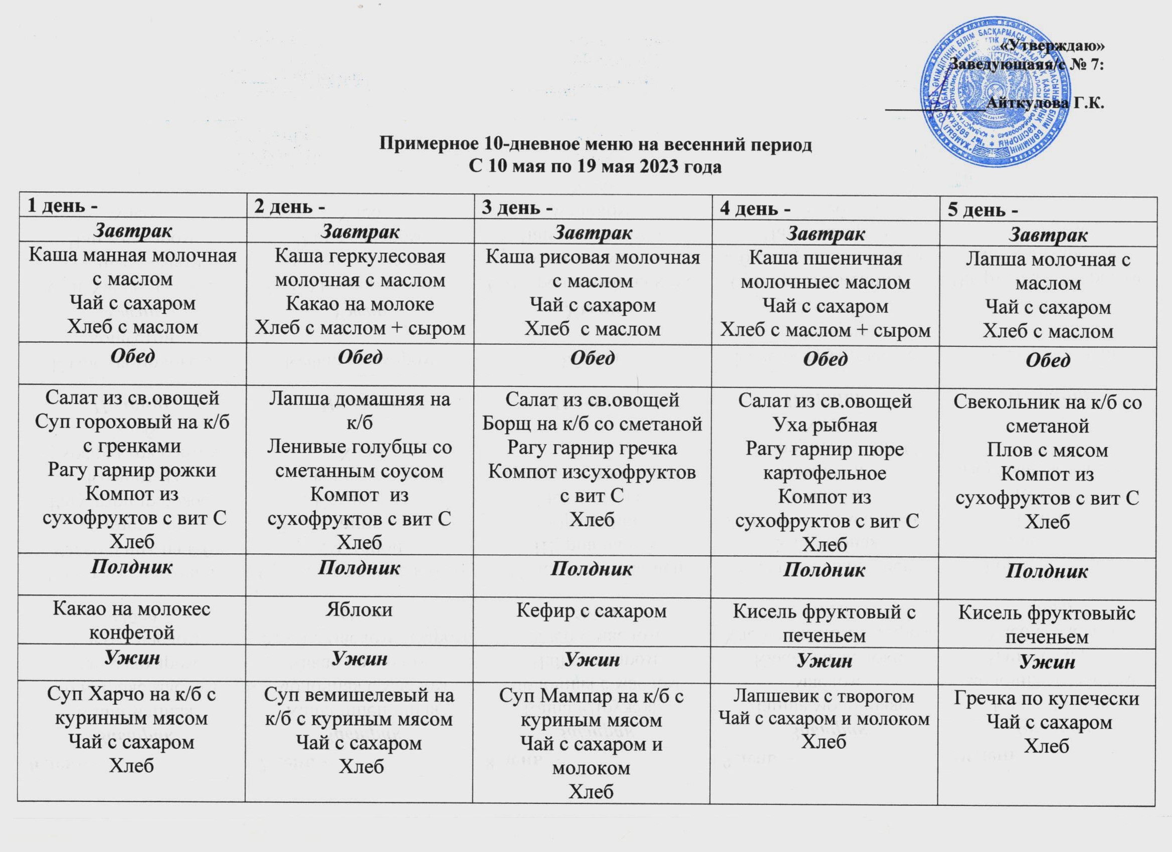 Примерное 10-дневное меню » №7 бөбекжай-бақшасы