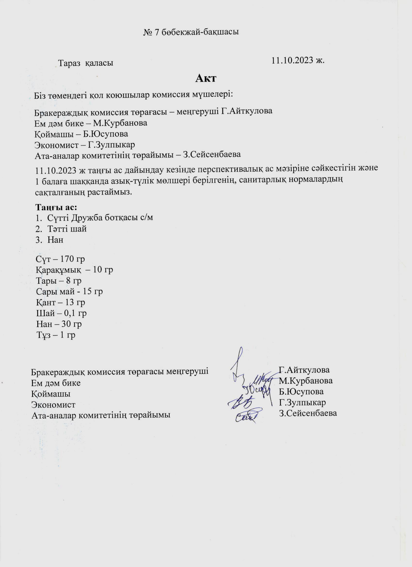 Акт №10 » №7 бөбекжай-бақшасы