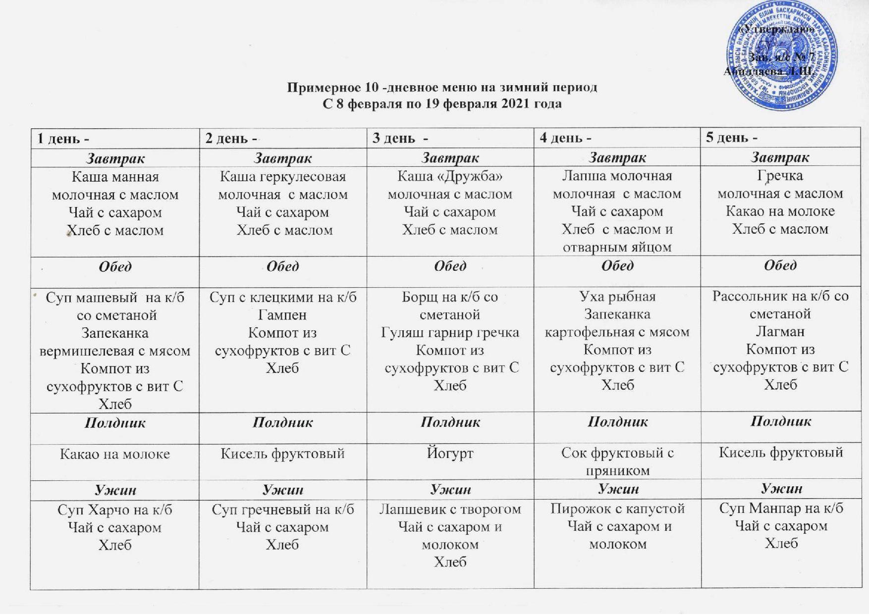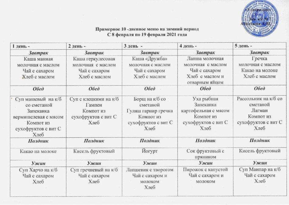 08 ақпан 2021 0 1 2 3 4 5 Примерное 10- дневное меню на зимний период с 08.02.2021 по 19.02.2021 Осы беттің QR-коды:QR-код этой страницы: