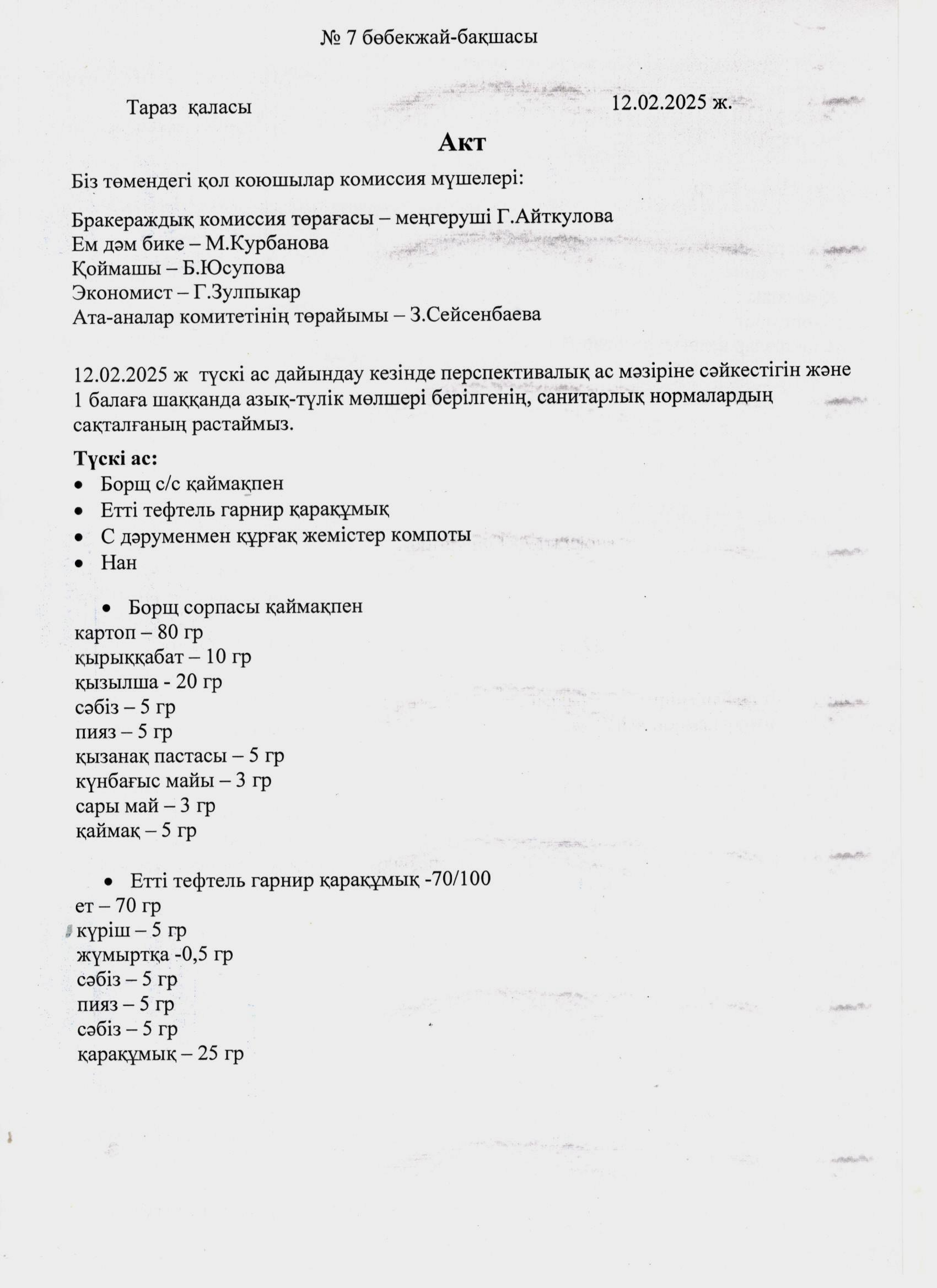 Акт 12.02.2025 ж. » №7 бөбекжай-бақшасы