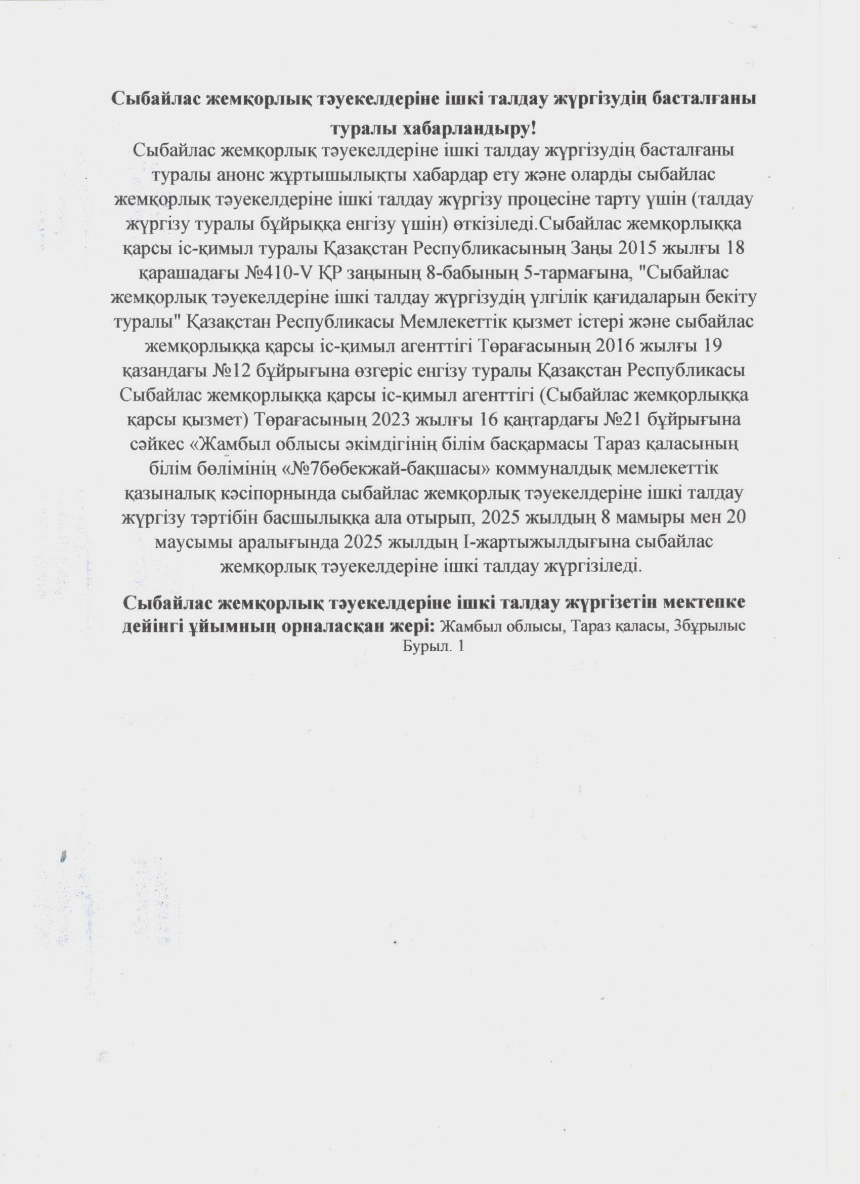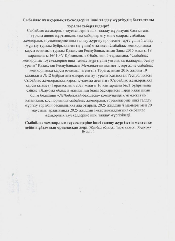 21 сәуір 2025 Сыбайлас жемқорлық тәуекелдеріне ішкі талдау жүргізу туралы хабарландыру Осы беттің QR-коды:QR-код этой страницы: