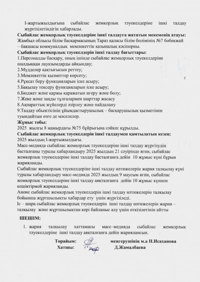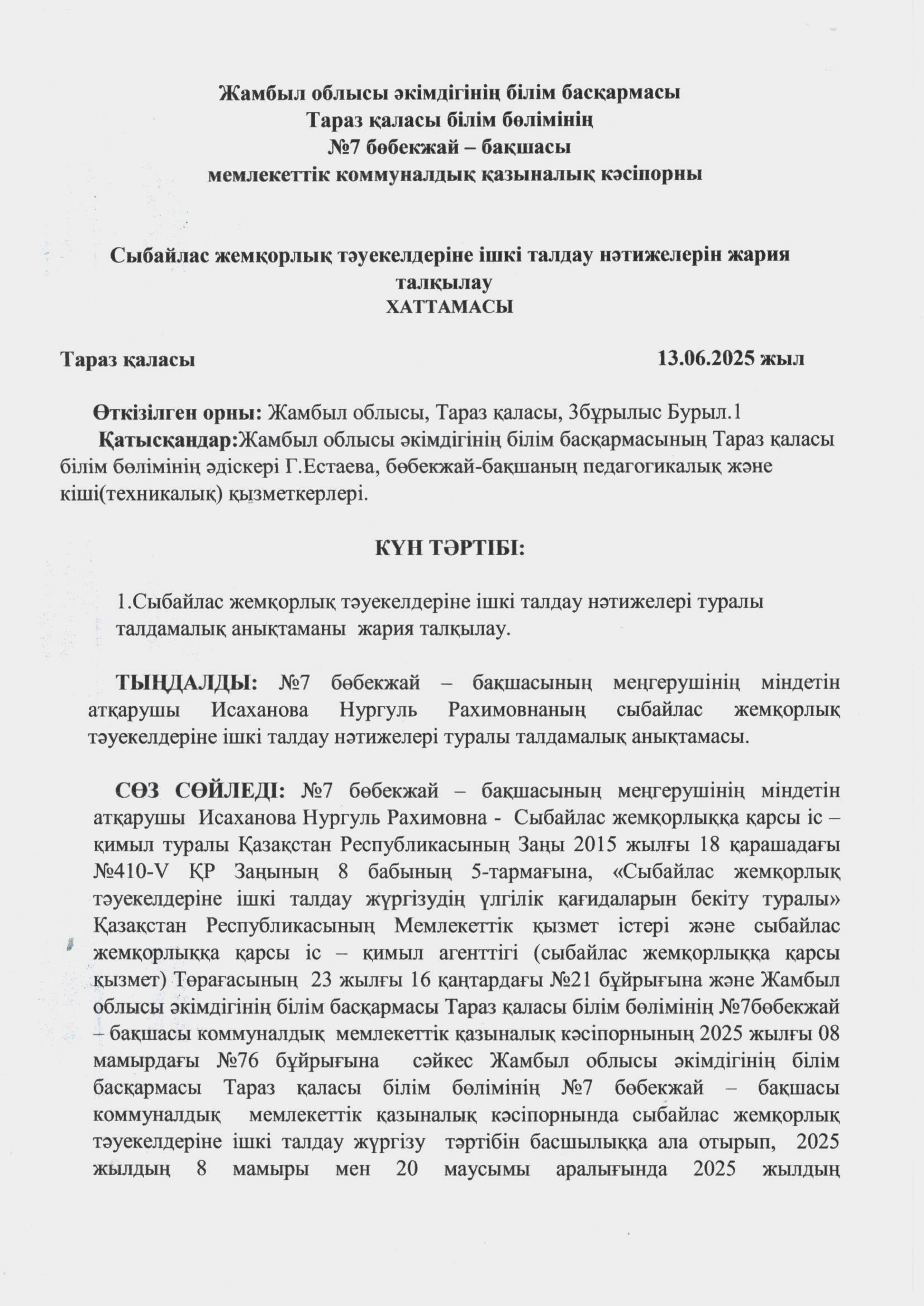 13 маусым 2025 Сыбайлас жемқорлық тәуекелдеріне ішкі талдау нәтижелерін жария талқылау хаттамасы Осы беттің QR-коды:QR-код этой страницы: